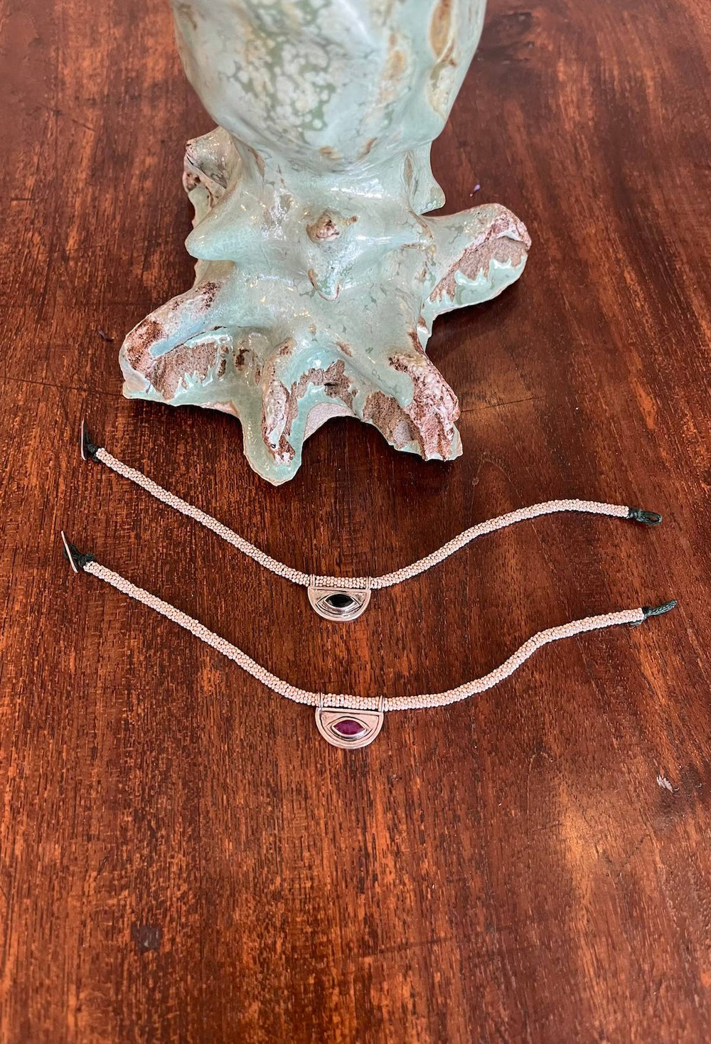 Nafsu- Bead bracelet w/gold fertility pendant I Black Sapphire