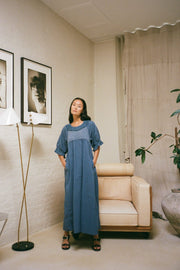 Cotton long angel dress I Dusty indigo