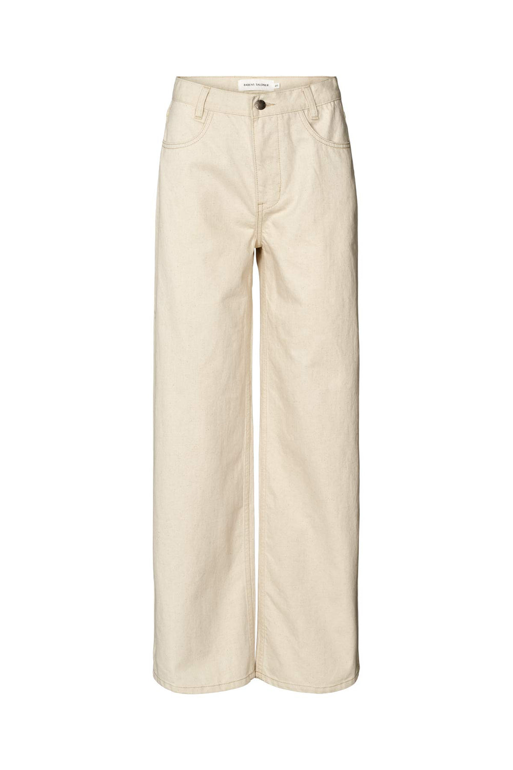 Disse flatterende ecrufarvede denimjeans er karakteriseret af en almindelig talje og lange bukseben med vidde.
