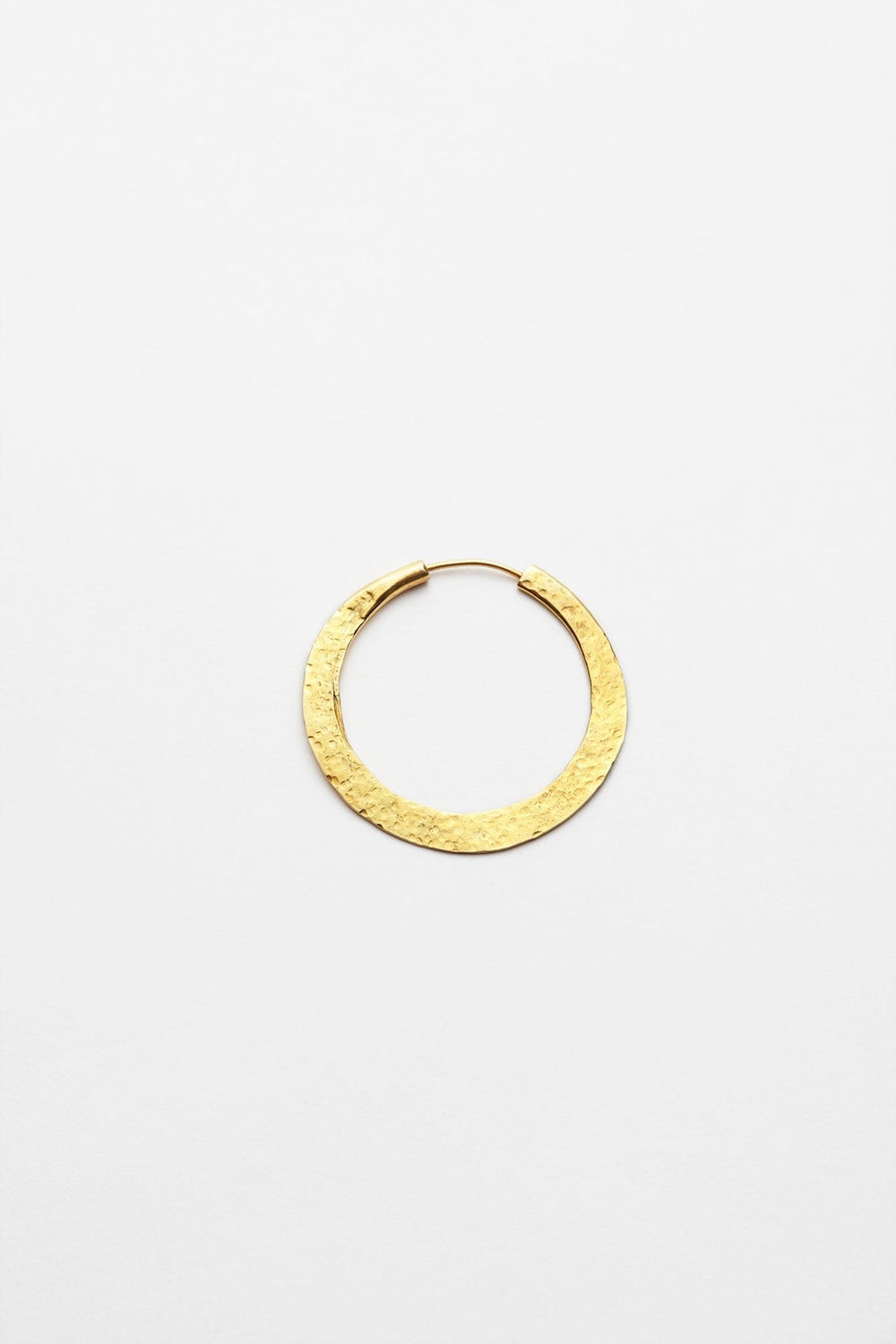 Denne smukke hoop-ørering i guld er lavet med en speciel hamreteknik, der giver smykket en mere rå overflade.
