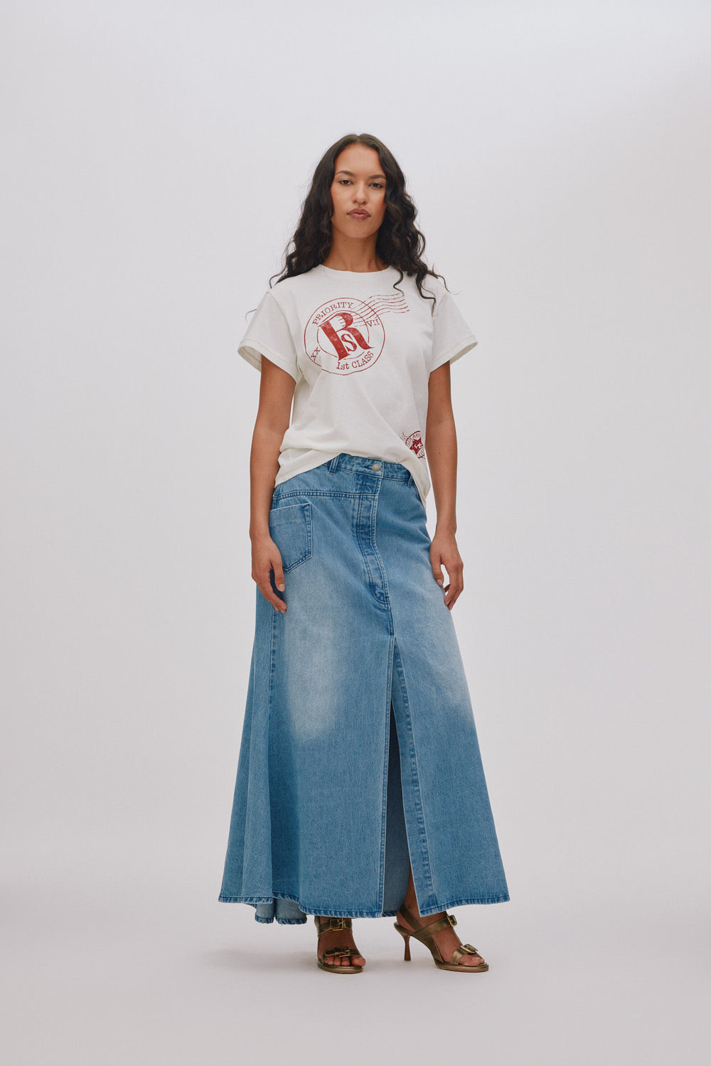 Emmali Denim long skirt I Light washed denim