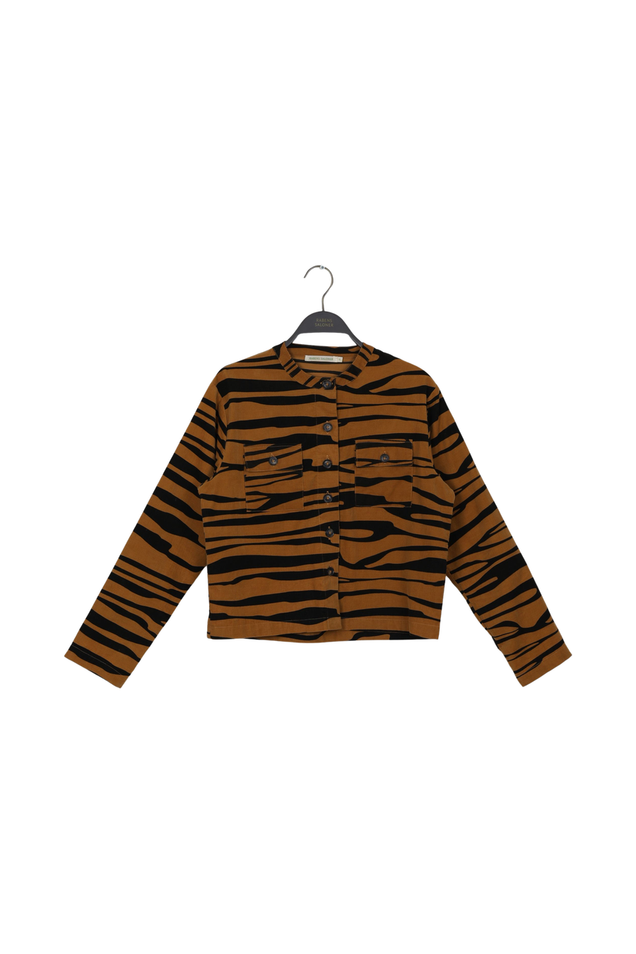 Add a striking layer to your look with the bark print cord jacket crafted in the season’s signature print.