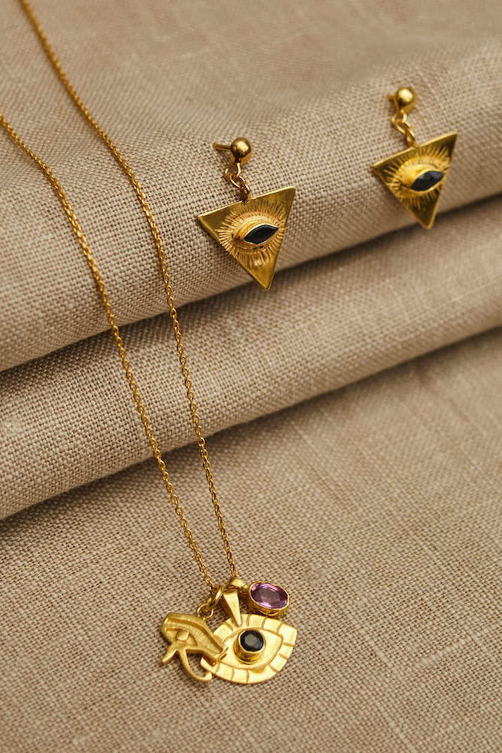 Nafsu Earstick w/ Triangle Eye Pendant I Black Sapphire