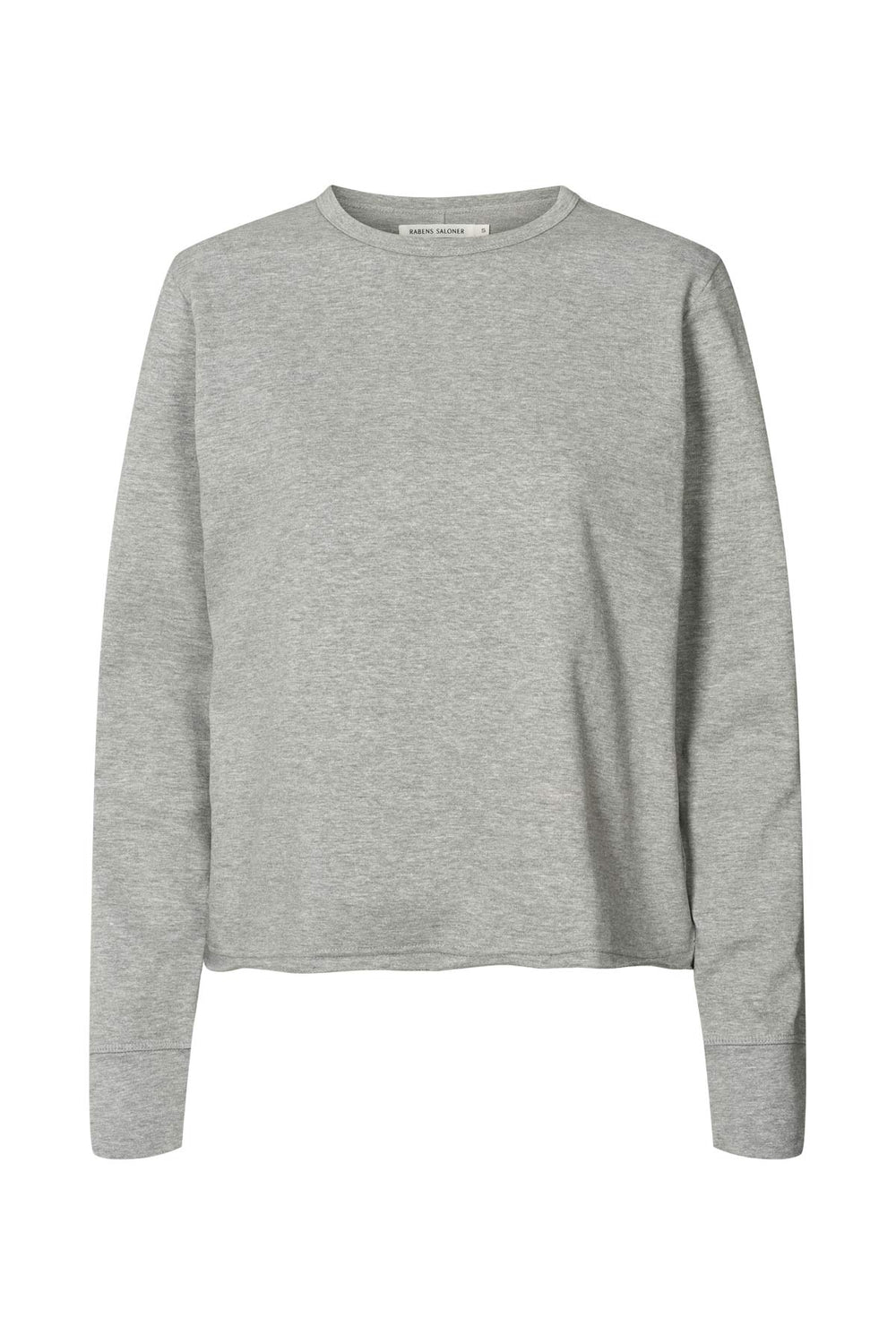 Toppen har en afslappet pasform med rund hals og lange ærmer. Den er detaljeret med synlige sømme og forskårne kanter.