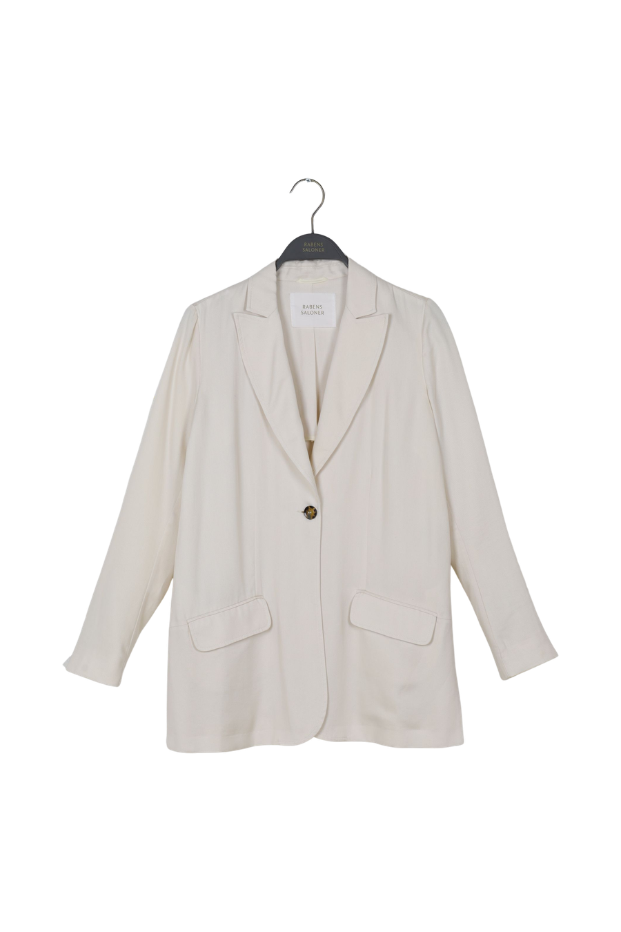 Jakken er lavet af et blødt stof i Tyrkiet og er defineret af sin enkelhed udtrykt i et afslappet snit med en udringet hals og enkeltknaplukning.
