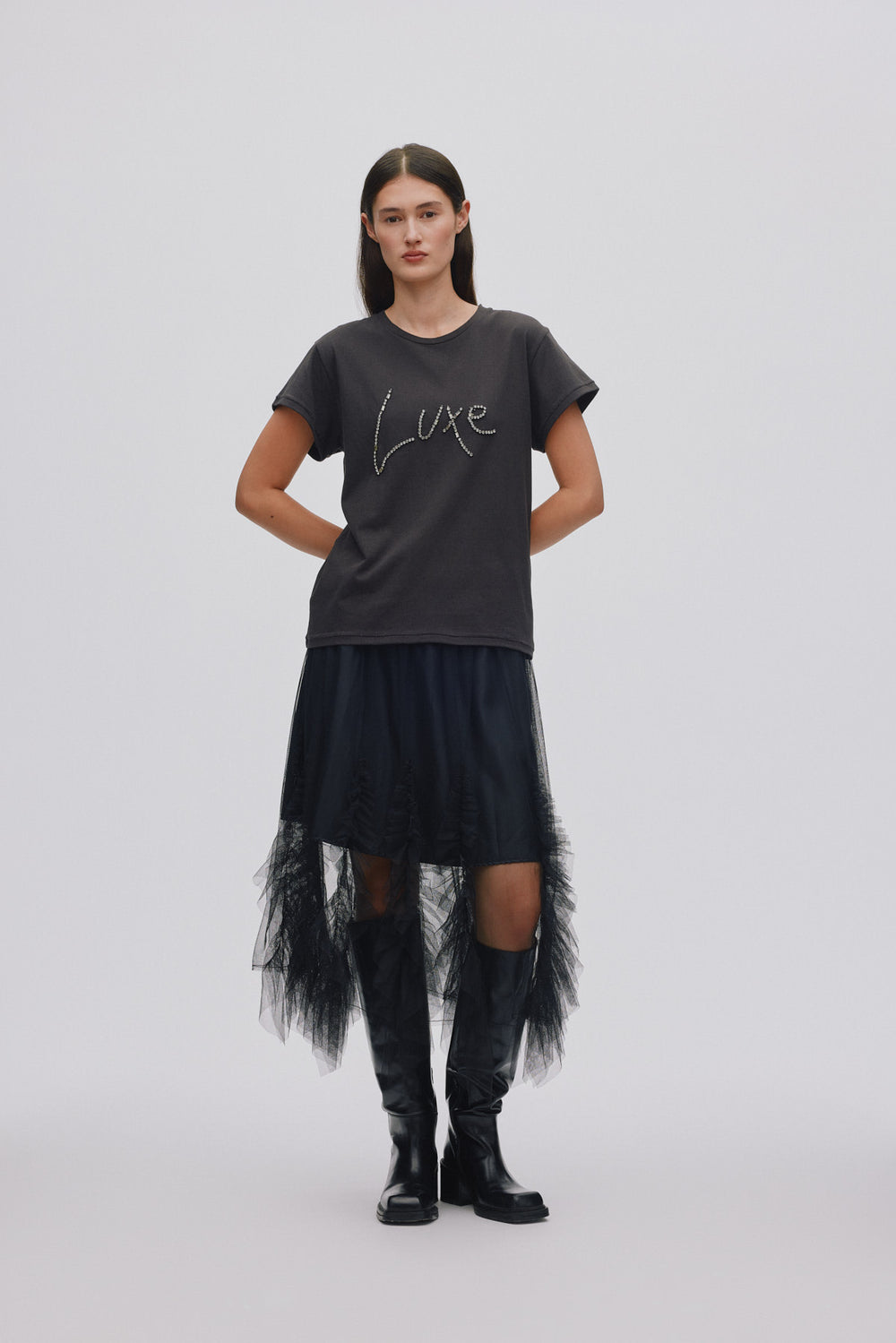 Tilføj et legende, men stilfuldt touch til din garderobe med denne tulle-nederdel.